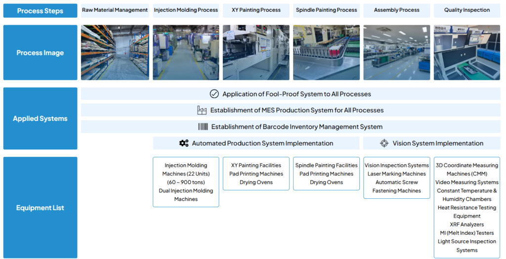 3D Coordinate Measuring Machines (CMM) Video Measuring Systems Constant Temperature & Humidity Chambers Heat Resistance Testing Equipment XRF Analyzers MI (Melt Index) Testers Light Source Inspection Systems